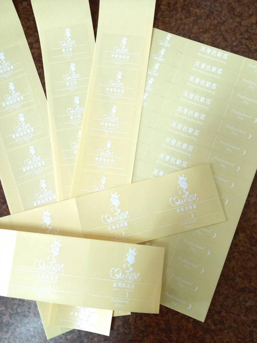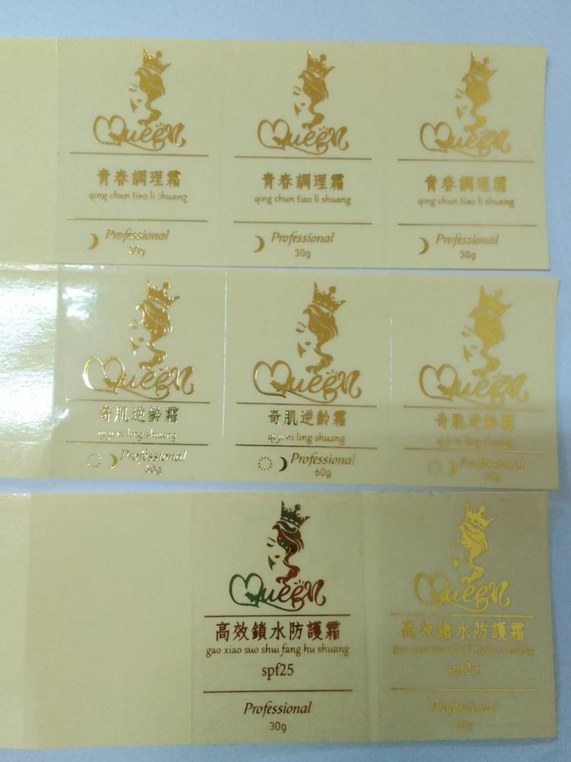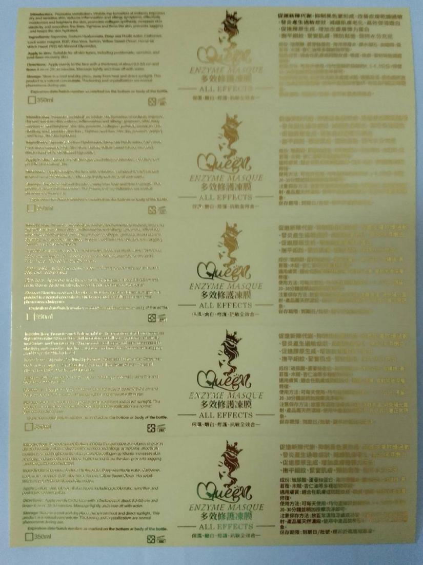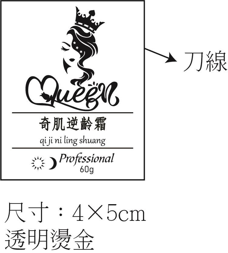像前述賣保養品的客人,以他的奇肌逆齡霜-4×5cm的透明燙金貼紙為例,下圖是其校稿